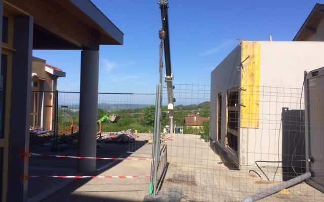 Les premiers murs de l’extension de l’école ont été posés et on devine les premières ouvertures.