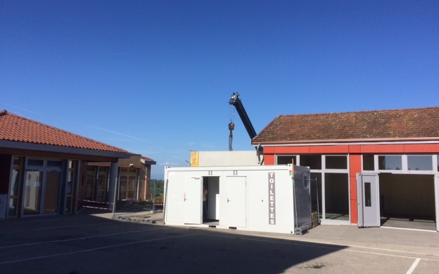Un bungalow avec des sanitaires a été installé dans la cour de l’école et la construction des nouveaux sanitaires aux normes accessibilité a débuté.