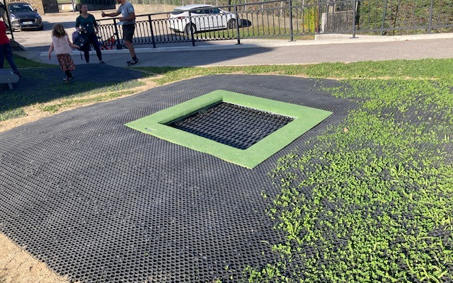 Réalisation d’une plateforme surélevée au carrefour entre la rue des Mas et la rue du Chatenay.